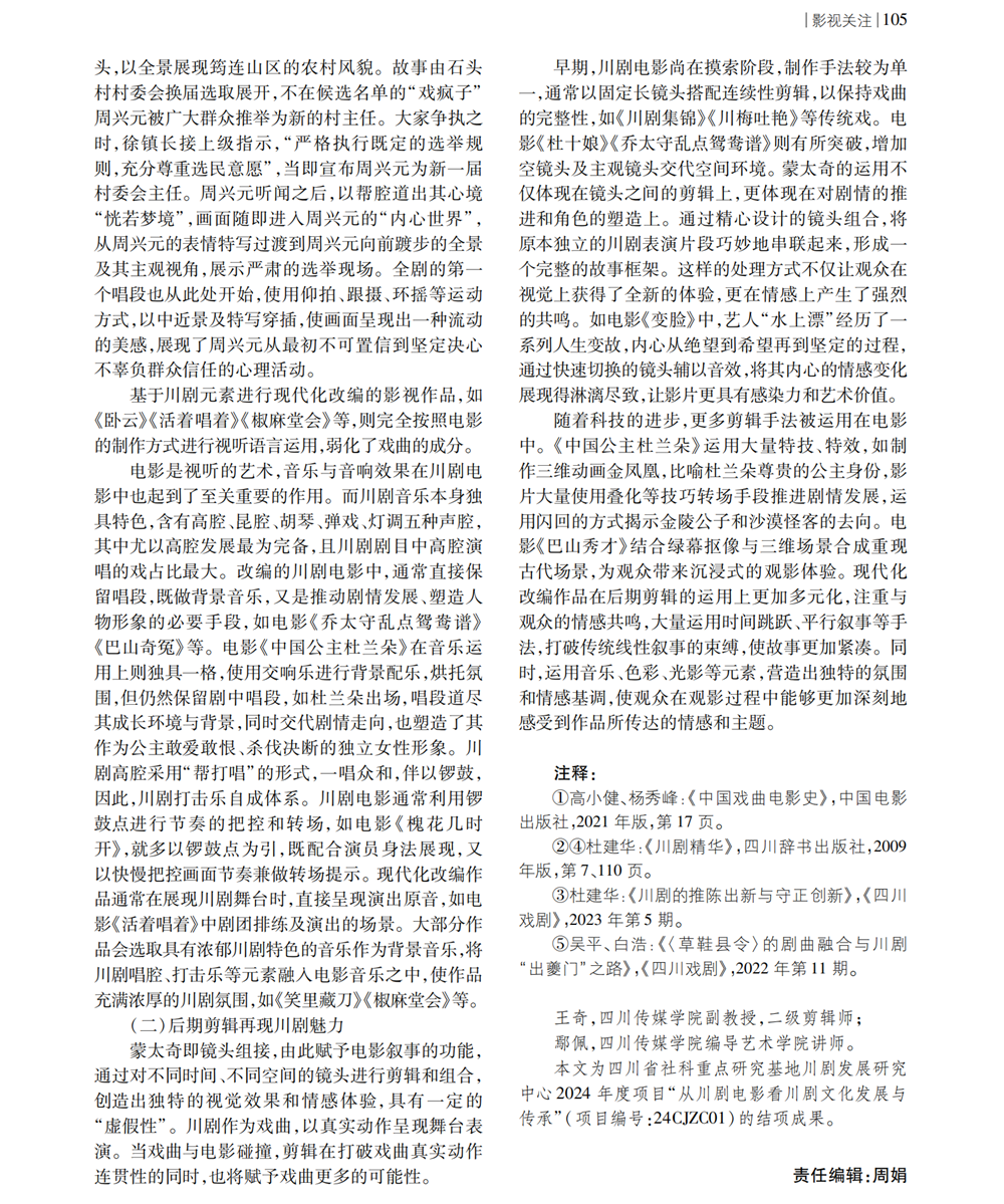 编者按:本文系四川省哲学社会科学重点研究基地川剧发展研究中心2024年度项目《从川剧电影看川剧文化发展与传承》(项目编号:24CJZC01)的阶段性研究成果。
